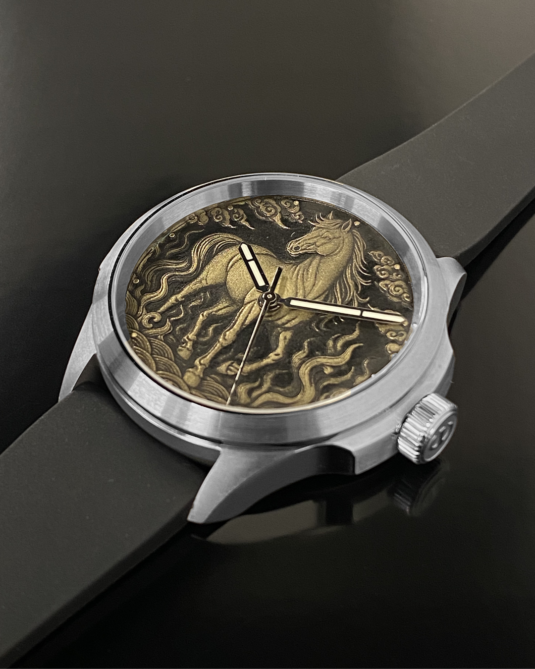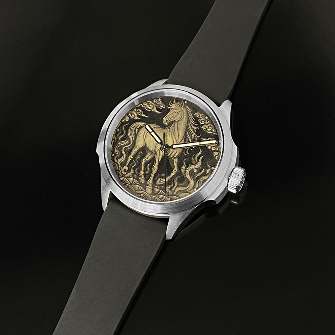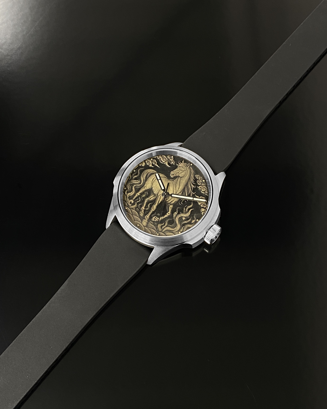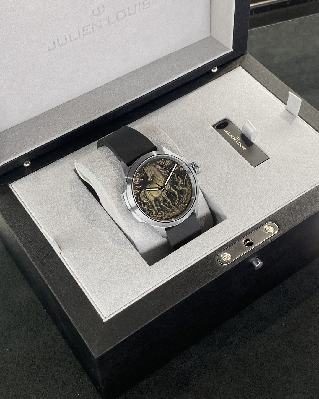 Le modèle Vestige incarne la dimension artistique de la marque. Son cadran s’inspire du cheval de feu, symbole du nouvel an chinois 2026.